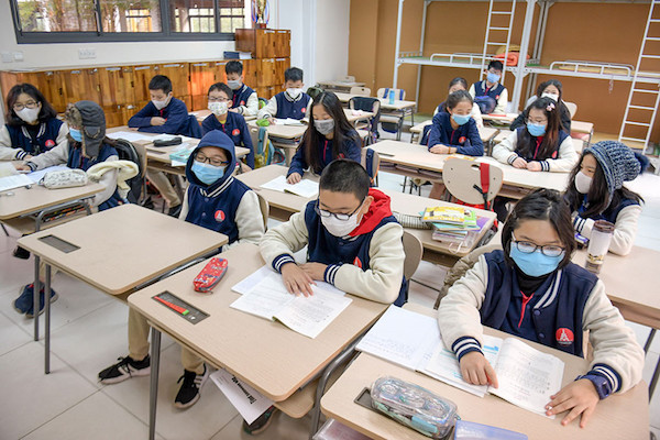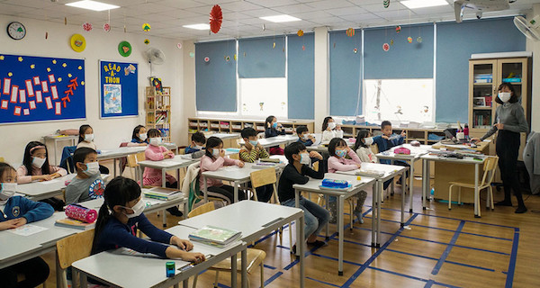 Một số trường tiểu học đã yêu cầu giáo viên và học sinh đeo khẩu trang trong lúc học tập và giảng dạy