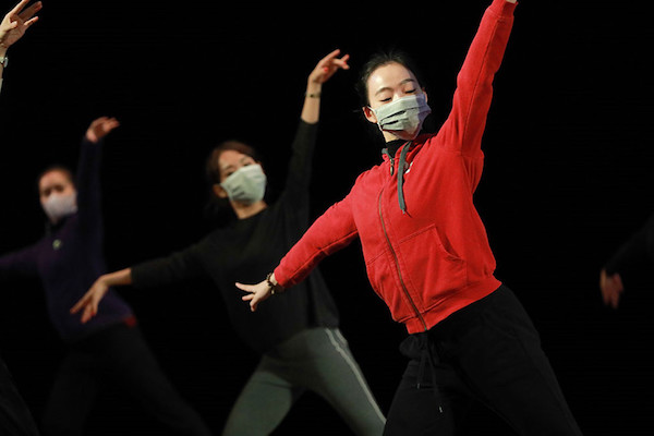 Tại một lễ tổng duyệt chương trình âm nhạc, các nghệ sĩ múa, diễn viên đều đeo khẩu trang để đảm bảo an toàn cho súc khỏe