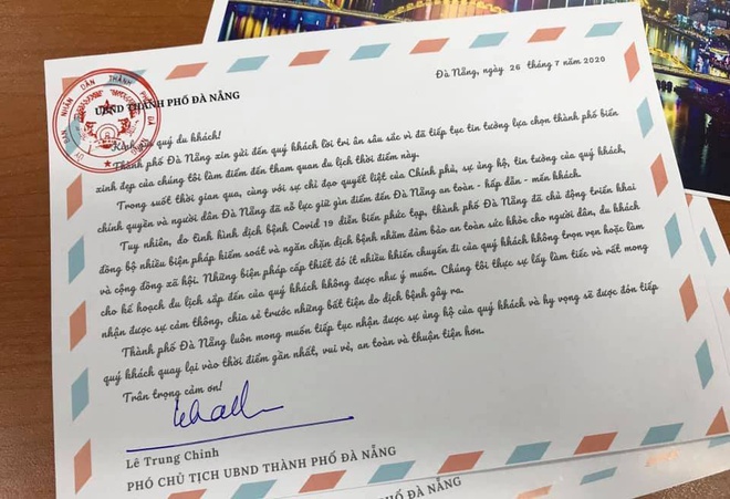 Lãnh đạo Đà Nẵng gửi tâm thư tới du khách sau 3 ca mới mắc Covid-19. Ông Lê Trung Chinh, Phó chủ tịch UBND TP Đà Nẵng viết "Những biện pháp cấp thiết khiến chuyến đi của quý khách không trọn vẹn. Chúng tôi lấy làm tiếc và mong nhận được sự chia sẻ trước những bất tiện do dịch gây ra".