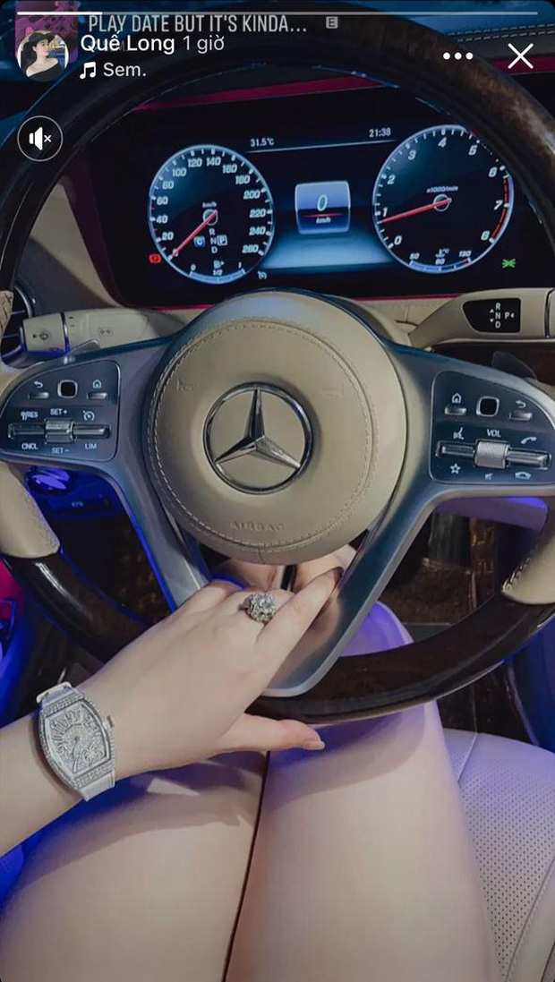 Tuy nhiên mới đây Quế Long đã bất ngờ comeback trên MXH bằng 1 bức hình nhiều tỷ đồng khiến netizen đã được phen trầm trồ. Bức ảnh được đăng tải chụp vô lăng xe ô tô sương sương với con "Mẹc", nhẫn kim cương to như hột nhãn và đồng hồ Franck Muller cũng full kim cương nốt.