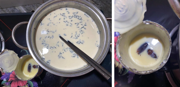 Có vẻ như đục nắp hộp sữa đặc ra nhưng không đậy kín trước đó, có 2 con gián đã bò vào bên trong mà cô nàng không hề hay biết. Kết quả là nồi trà sữa đã được nấu bằng sữa ngâm với gián.