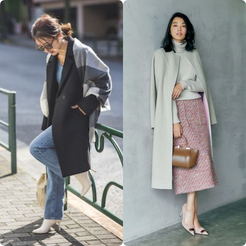 Áo dáng dài còn là những thiết kế áo khoác dạ dài quá đầu gối. Diện mẫu áo này, các quý cô sành điệu thường layer bên trong áo thun trắng, hoặc váy trắng. Cách phối màu sắc này vô cùng hợp lý, đem đến hiệu quả hack tuổi cao nhất, và giúp chị em có được vẻ ngoài tinh tế.
