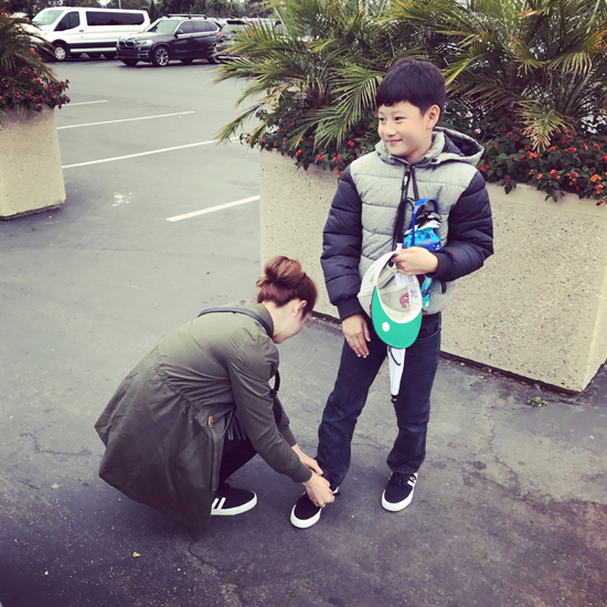 Jennifer Phạm và con trai cùng đi giày đôi khi đến vui chơi ở công viên Seaworld.
