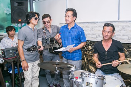 Chế Linh say sưa tập nhạc cùng hai con trai, trổ tài đánh trống chuẩn bị cho đêm nhạc