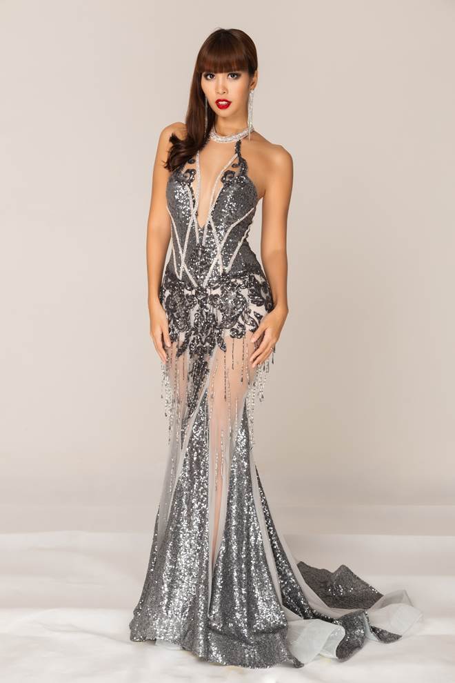 Hà Anh diện một bộ váy dạ hội xuyên thấu, bó sát vô cùng gợi cảm