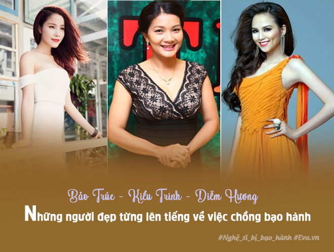 Điểm lại, có thể kể đến các nhân vật nổi tiếng khác như diễn viên hài Thúy Nga, Hoa hậu Thế giới người Việt 2010 Diễm Hương cũng tiết lộ bị chồng cũ đánh nhiều lần, gây nhiều thương tích trên cơ thể. Một giọng ca được nhiều người ái mộ là Hồ Lệ Thu có lần chia sẻ, cô bị người chồng cũ vũ phu thường xuyên đánh đập hành hạ cả về thể xác lẫn tinh thần. Bảo Trúc – cô diễn viên, người mẫu tên tuổi đang lên thì bỗng dưng theo chồng bỏ cuộc chơi. Bẵng đi một thời gian công chúng bỗng thấy Bảo Trúc tố chồng cũ ghen tuông, bạo hành không thương tiếc khiến cô phải tự tử.