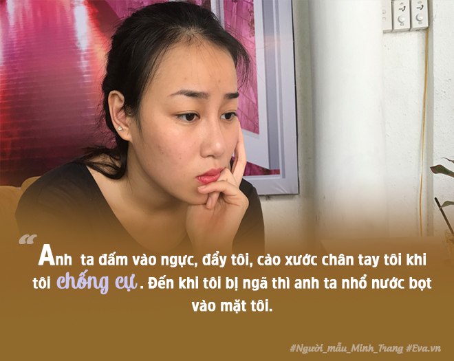 Mới đây nhất, người mẫu ảnh Minh Trang cũng bất ngờ tiết lộ về cuộc hôn nhân đẫm nước mắt với chồng đại gia. Cô tố chồng giữ hai con và không cho mình được quyền chăm sóc. Không nhận được tình yêu của chồng, ngược lại cô còn nhiều lần bị hành hung. Minh Trang cho biết do uất ức trước những lời đay nghiến và chửi rủa, vào cuối năm 2015, cô đã mua thuốc ngủ tự tử. May mắn, người giúp việc phát hiện đã đưa cô đưa cấp cứu, rửa ruột kịp thời.