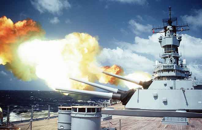 Pháo chính gắn trên USS Iowa có thể đánh trúng mục tiêu xa tới 32km.