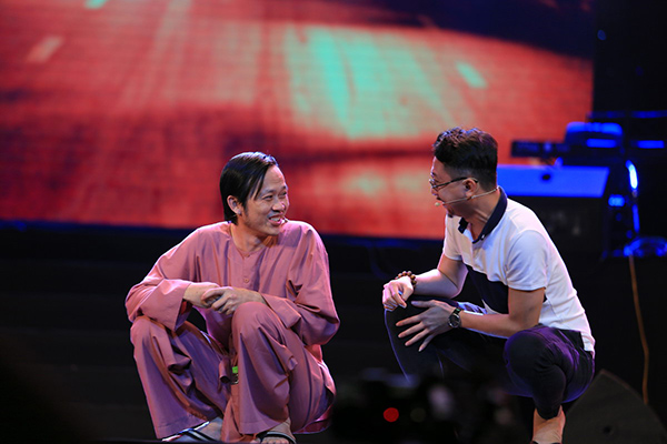 Hoài Linh cũng kéo cao quần khoe đôi chân thon