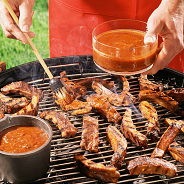 Tẩm ướp thịt trước khi nướng với hỗn hợp nước rau quả như: nước cam (chanh, quýt), gừng, ớt, giấm, rượu đỏ... vì có chất chống ôxy hoá. Rưới nước xốt khi nướng để tránh thịt bị cháy. Nên tẩm hoặc ướp thực phẩm cần nướng với nước xốt trước khi nướng.