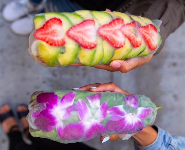 Một đầu bếp gốc Việt đã có món gỏi cuốn độc lạ trên đất Mỹ. Đầu bếp này không cuốn theo kiểu truyền thống. Thay vì đó, món gỏi cuốn có các loại hoa ăn được có màu sắc sặc sỡ.