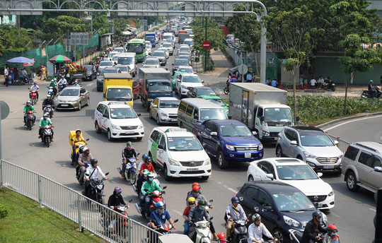 Cửa ngõ sân bay Tân Sơn Nhất đông kín xe mặt đường. Tình trạng xe cộ di chuyển nhúch nhích từng chút một. Khiến ùn tắc xảy ra suốt nhiều giờ trưa ngày 8/2.