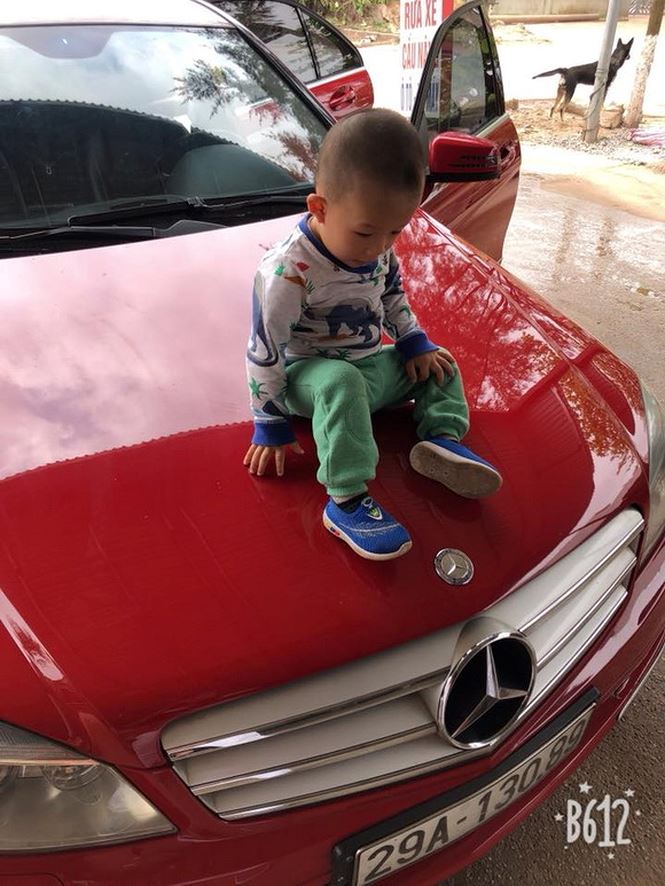 Con trai Hiệp Gà bên cạnh chiếc xế hộp mới toanh của nam diễn viên.
