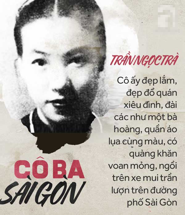 Cô Ba Sài Gòn, cô Ba Trà có tên thật là Trần Ngọc Trà (sinh năm 1906). Nếu như cô may mắn được ông trời phú cho một nhan sắc diễm lệ đến mức “Tây Thi khiếp vía, Hằng Nga giật mình”, làm khuynh đảo trái tim của bao nhiêu công tử thời bấy giờ thì lại nhẫn tâm lấy đi của cô nhiều nước mắt.