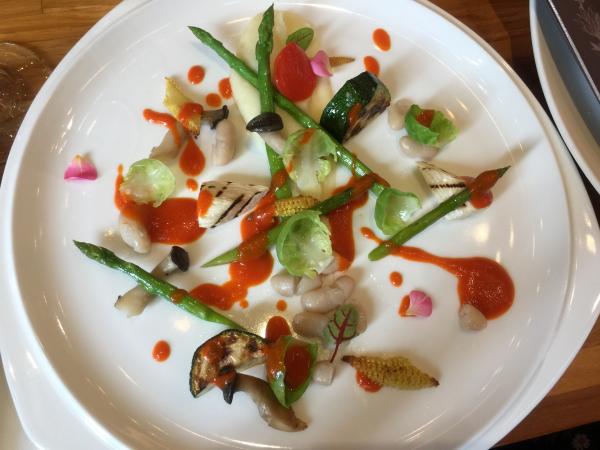 Món khai vị gồm cà chua, rau... cùng bắp cải Jadeite với nước sốt sò điệp khô là những món "đặc trưng" hương vị xứ Đài ở Silks Palace, trong Bảo tàng Cung điện Quốc gia.