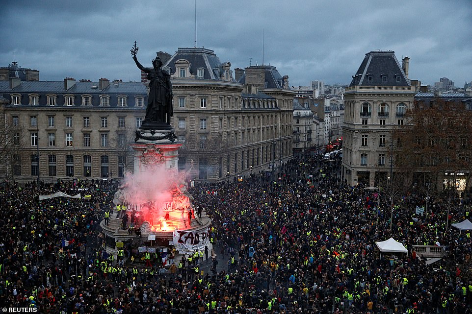 Ở Paris, cuộc biểu tình diễn ra từ ôn hòa, dần dẫn đến bạo động, đập phá, gây mất trận tự cả về an ninh đường phố cũng như đời sống chính trị của đất nước.