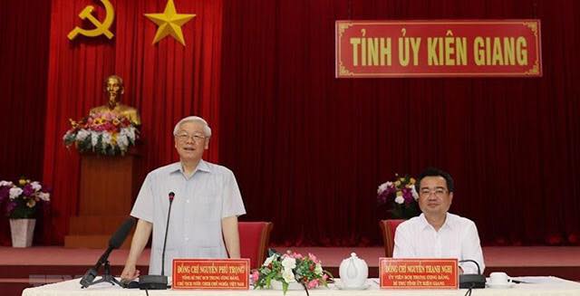 Một ngày sau, chiều 13/4/2019, ông Trọng cùng phái đoàn cao cấp từ trung ương bất ngờ đến Kiên Giang làm việc với bí thư Nguyễn Thanh Nghị, con trai ông Nguyễn Tấn Dũng.