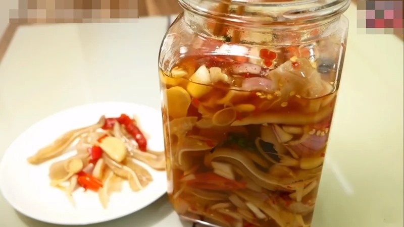 Chuẩn bị lọ thủy tinh hoặc hộp thủy tinh để cho phần tai heo đã thái, hành, tỏi, sả, ớt vào trộn đều. Sau khi nước mắm nguội, bạn từ từ rót phần nước mắm vào, đảm bảo món ngon ngấm đều gia vị và ăn nhanh hơn. Cho vào lọ thủy tinh đậy kín để khoảng 1 đến 2 ngày là có thể ăn được.