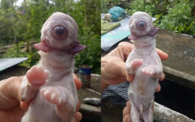 Chú chó con kỳ lạ chỉ sở hữu một mắt với hai chiếc lưỡi khổng lồ nhô ra và không có mũi.