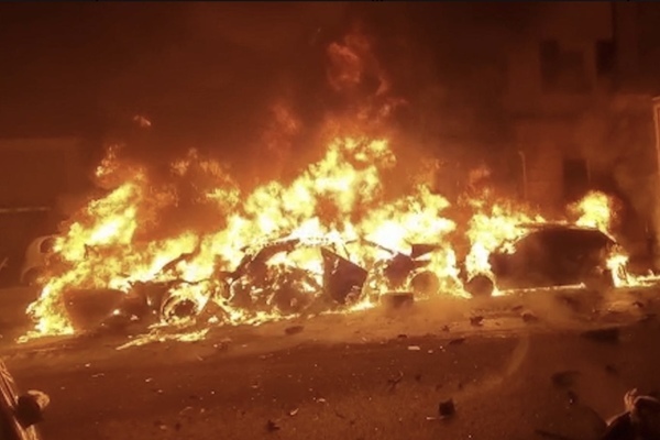 Một số ô tô bị hỏng nặng và bốc cháy. Chiếc xe tải mất kiểm soát cũng bốc cháy và ngọn lửa sau đó lan sang tòa nhà gần đó, làm người dân phải đi sơ tán.