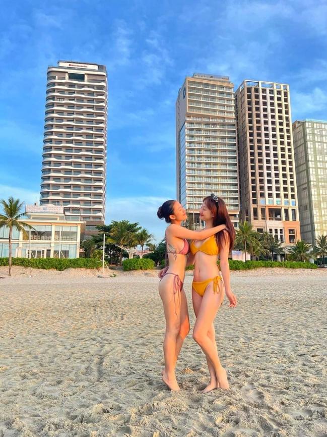 Tiếp đó, cô khoe khoảnh khắc cùng bạn diễn tạo dáng với bikini ở bãi biển cực hút mắt. Không ít người đã trêu chọc Trang Cherry rằng "hai nữ y tá trốn việc đi biển khiến dân tình náo loạn vì quá gợi cảm".
