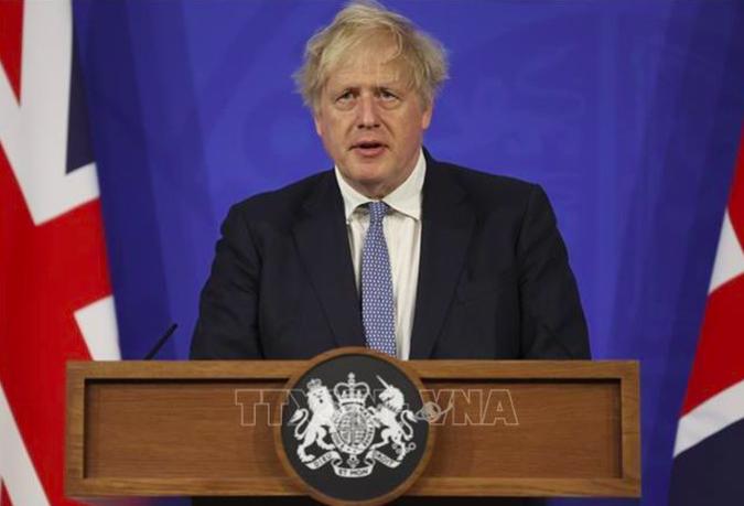 Thủ tướng Anh Boris Johnson phát biểu tại cuộc họp báo ở London ngày 25/5/2022. Ảnh: THX/TTXVN
