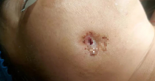 Dây là trường hợp hy hữu, răng khôn mọc lệch đâm thủng má vẫn nghĩ là... mụn. Bệnh nhân tự điều trị tại nhà bằng thuốc tự mua và thuốc nam vì chủ quan nghĩ là mụn bình thường.
