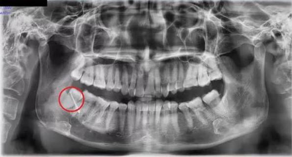 Các bác sĩ chỉ định nhập viện điều trị ngay với chẩn đoán: Áp xe vùng má phải do răng số 48 mọc lệch. Đồng thời, thực hiện phẫu thuật cắt đường dò má và nhổ răng nguyên nhân. Đây là chiếc răng khôn nằm tại vị trí hàm dưới bên phải trên cung hàm của bệnh nhân.
