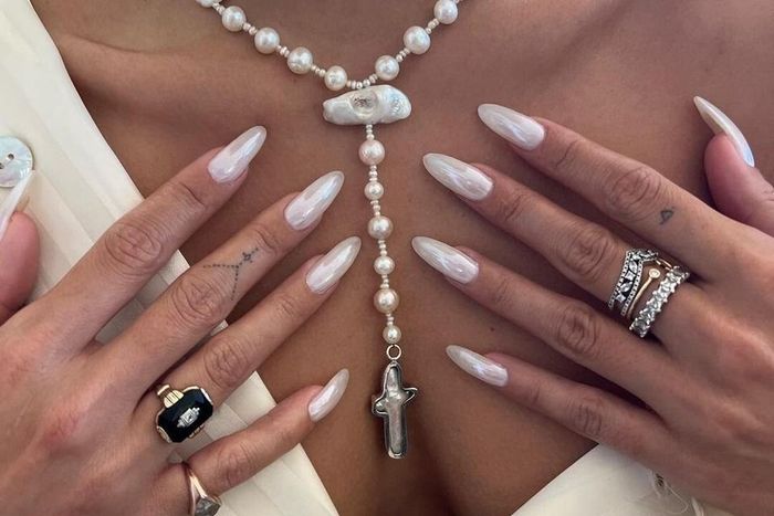 Vanessa Hudgens thực hiện bộ nail tương hợp với trang sức ngọc trai, nắm bắt xu hướng màu móng mới. Ảnh: @nailsbyzola.