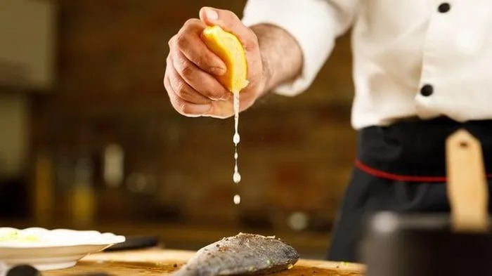 Giấm và nước cốt chanh có tính axit mạnh, không chỉ giúp khử mùi tanh của cá mà còn giảm vị đắng hiệu quả. Sau khi rửa cá bằng nước lạnh, bạn có thể ngâm cá với nước có pha giấm hoặc nước cốt chanh trong vài phút. Rửa sạch lại cá trước khi chế biến.