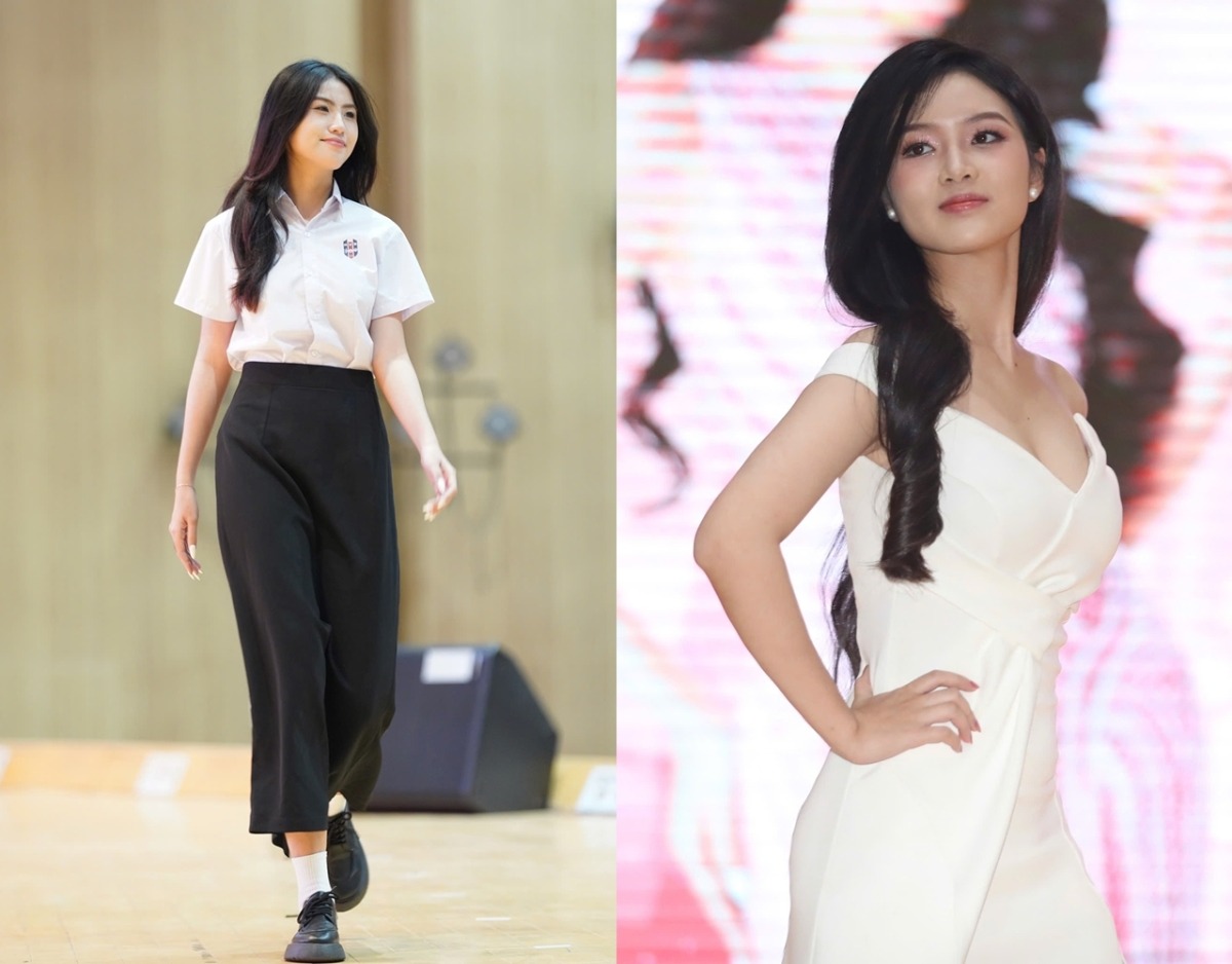 Cô gặp gỡ Á hậu Phương Anh (trái). Anh Thư đang là sinh viên năm hai ngành Quản trị kinh doanh. "Hiện tôi cần trau dồi nhiều hơn kỹ năng catwalk, giao tiếp", nữ sinh nói.