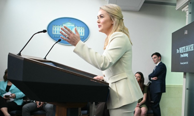 Phát ngôn viên Nhà Trắng Karoline Leavitt tại buổi họp báo hôm 19/3. Ảnh: AFP