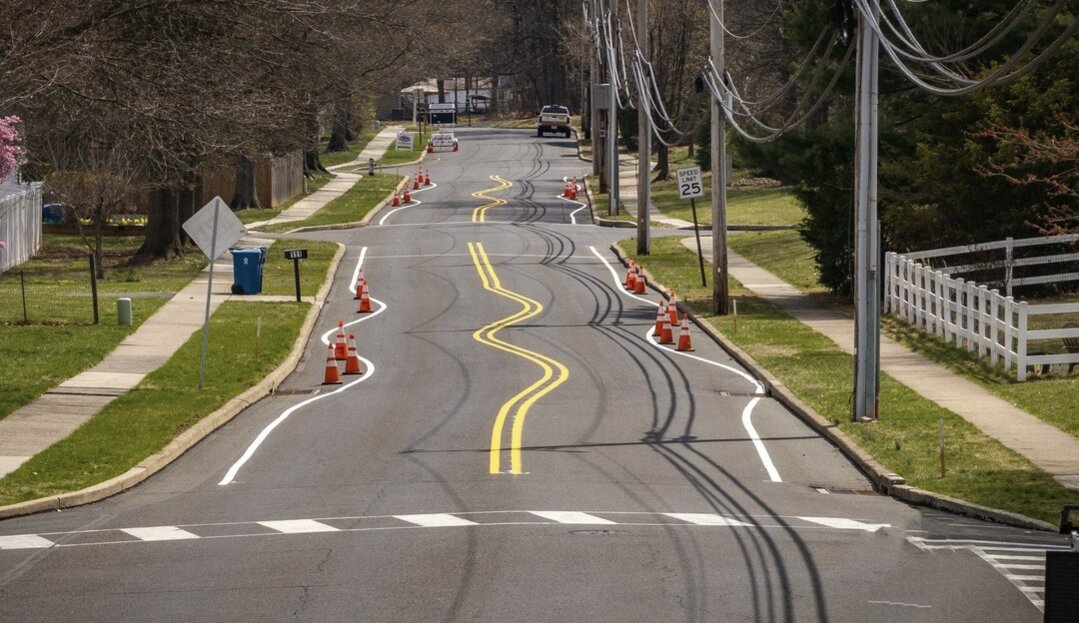 Theo CBS News, các đường kẻ zích zắc được sơn trên đường tại thị trấn Montgomery vào thứ Sáu (28/3). Sở cảnh sát địa phương công bố trên Facebook hôm thứ Bảy (29/3) rằng đây là biện pháp “làm dịu giao thông” nhằm giải quyết tình trạng con đường bị biến thành “đường đua” sau nhiều phàn nàn từ cư dân. Ngoài đường kẻ uốn lượn, chính quyền còn dự kiến bổ sung các khúc cua gấp (chicanes) để tăng hiệu quả giảm tốc.