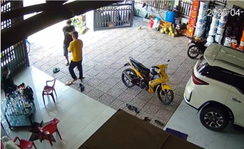 Sáng 28/4, Phúc đội mũ bảo hiểm, đeo khẩu trang, mặc áo tay dài màu sẫm, bất ngờ đi vào ngôi nhà ở xã Vĩnh Xuân, huyện Trà Ôn.