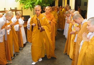 Tôi xúc động nhất là thời điểm mà ḿnh và hai người bạn chính thức được công nhận là nhà sư. Xung quanh chúng tôi biết bao tu nữ cùng các phật tử, thiền sinh cúi xuống lạy. Họ dâng cho chúng tôi rất nhiều thứ: thuốc đánh răng, bàn chải, sữa, đường, bông ngoáy tai … kèm thái độ cung kính.
