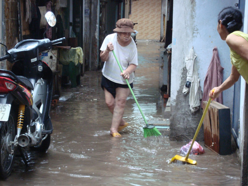 Clip người Hà Nội tát nước giữa nhà sau cơn mưa
