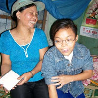 Một điều không b́nh thường là mắt Xuyến từ nhỏ cứ mờ dần, có lẽ do những di chứng từ khi sinh ra trong hoàn cảnh đặc biệt và tật mờ mắt khiến mọi sinh hoạt, học tập của em đều rất khó khăn. Gia đ́nh nghèo không có tiền đi khám, tuy nhiên cứ mỗi lần có đoàn bác sỹ ở Tuy Ḥa, hay Tp HCM ra khám bệnh miễn phí cho người nghèo th́ chị đều đưa con nuôi đến khám. Bé Xuyến đi học chậm 4 năm so với tuổi nhưng học cũng được và rất hiền ngoan. Tuy nhiên, đến cuối năm ngoái, khi học hết lớp 4 th́ em đến trường xin các thầy cô giáo cho em được nghỉ học luôn. Khi hỏi v́ sao cháu không đi học nữa, có phải v́ lớn tuổi rồi nên mắc cỡ với bạn bè, bé Xuyến trả lời rất dễ thương: “V́ nhà cháu nghèo nên cháu nghỉ học ở nhà đi làm giúp má chứ không phải v́ mắc cỡ”.