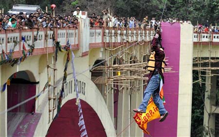Kỷ lục gia Ấn Độ chết khi đang đu dây vượt sông bằng tóc