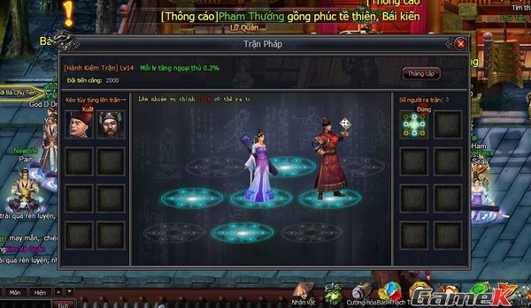 Hệ thống combat trong game, nếu không muốn nói là tương đồng, thì sẽ có thể được mô tả bằng cụm từ “giống y hệt” với những webgame nhập vai khác trên thị trường hiện nay. Với việc lên level, người chơi sẽ có thể thu nạp những đồng đạo võ lâm về đội của riêng mình với con số tối đa là 8 (không khác The Voice), sau đó sắp xếp đội hình để việc combat có thể diễn ra theo như ý muốn.