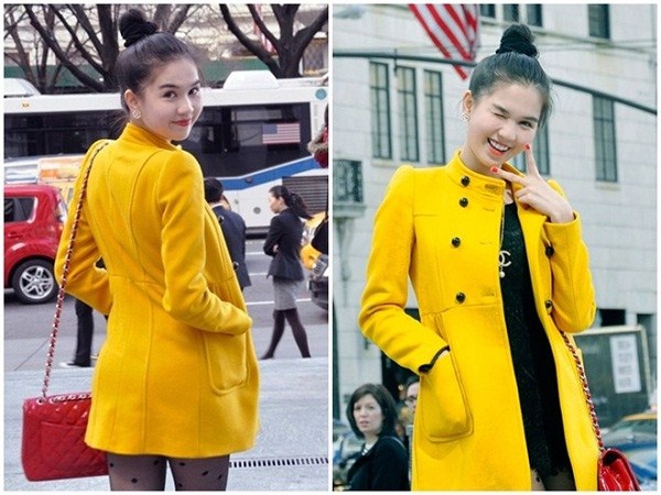 Ngọc Trinh thường kết hợp áo măng tô dài với những bộ áo liền quần soóc hoặc váy ngắn vô cùng trẻ trung mà vẫn gợi cảm.