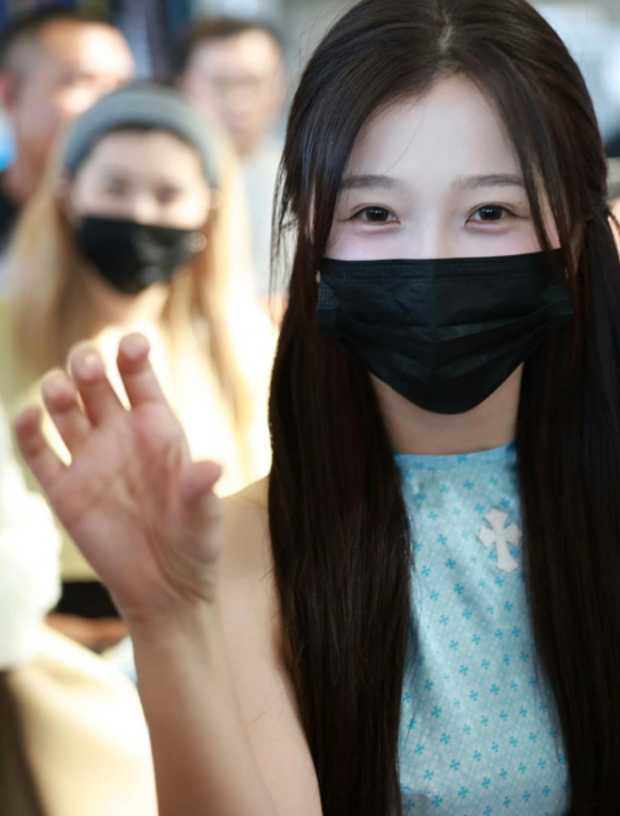 Bên cạnh đó, Ngu Thư Hân kết hợp thêm quần cạp trễ, để lộ vòng eo “con kiến” vạn người mê. Xuyên suốt thời gian xuất hiện ở sân bay, Ngu Thư Hân gần như che kín mặt, nhưng vẫn để lộ đôi mắt to tròn, tinh nghịch. Nữ diễn viên để tóc đen, thẳng đơn giản, “đu trend” nhảy theo nhạc ở sân bay.