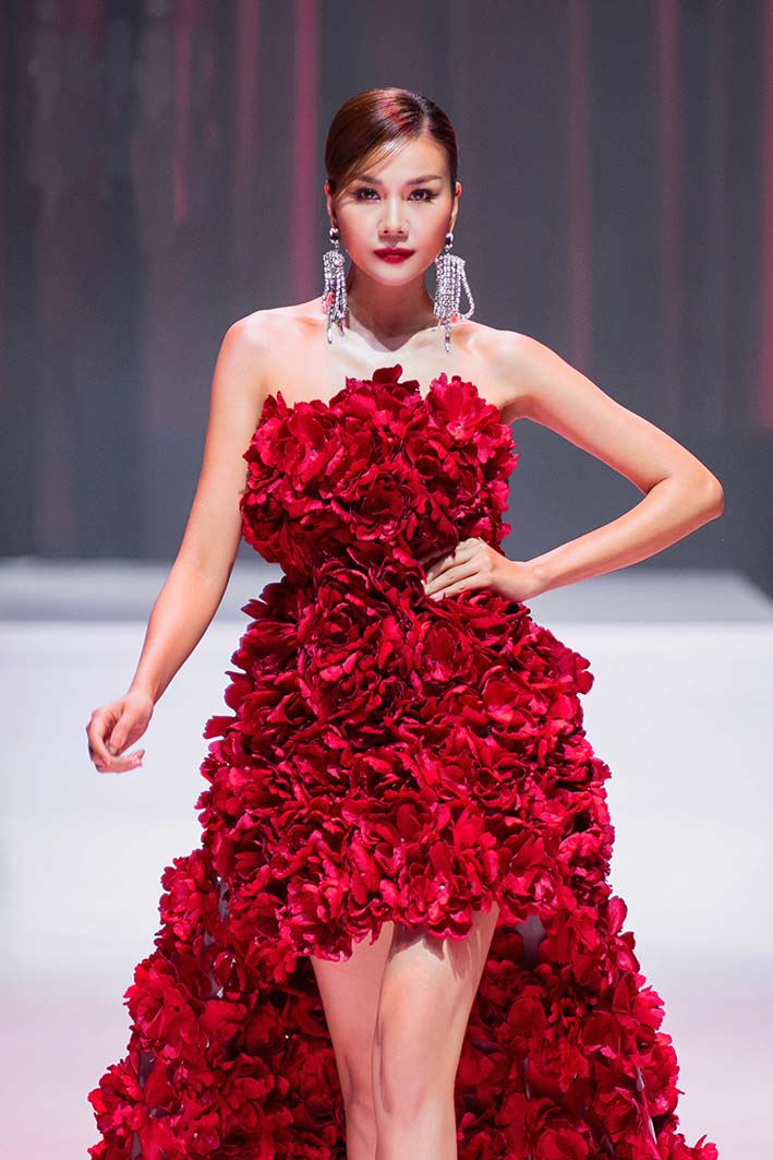 Old  Default Siêu mẫu Thanh Hằng gây ngỡ ngàng khi diện váy nặng hơn 20kg, đính 1.000 bông hồng bằng vải