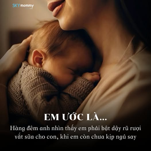 Chồng ạ. Em ước hàng đêm anh nhìn thấy em phải bật dậy rũ rượi vắt sữa cho con khi chưa kịp ngủ say. Rồi cho con ăn, đợi con ngủ say tiếp rồi mới đặt lưng ngủ tiếp. Có những khi bị tỉnh hẳn rồi lại không ngủ nổi. Thế là nhắm mắt thức.