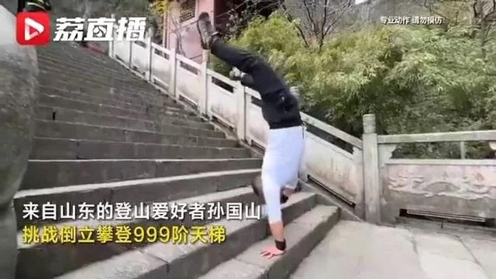 Vào tháng 12 năm ngoái, anh đã dành 5 giờ để leo lên 999 bậc thang của núi Thiên Môn Sơn tại Trương Gia Giới, tỉnh Hồ Nam, trong tư thế trồng cây chuối. Anh thừa nhận rằng đây là thử thách khó khăn nhất trong số 34 ngọn núi mà anh đã leo bằng tay, với gần 100 lần ngã trên đường lên đỉnh.