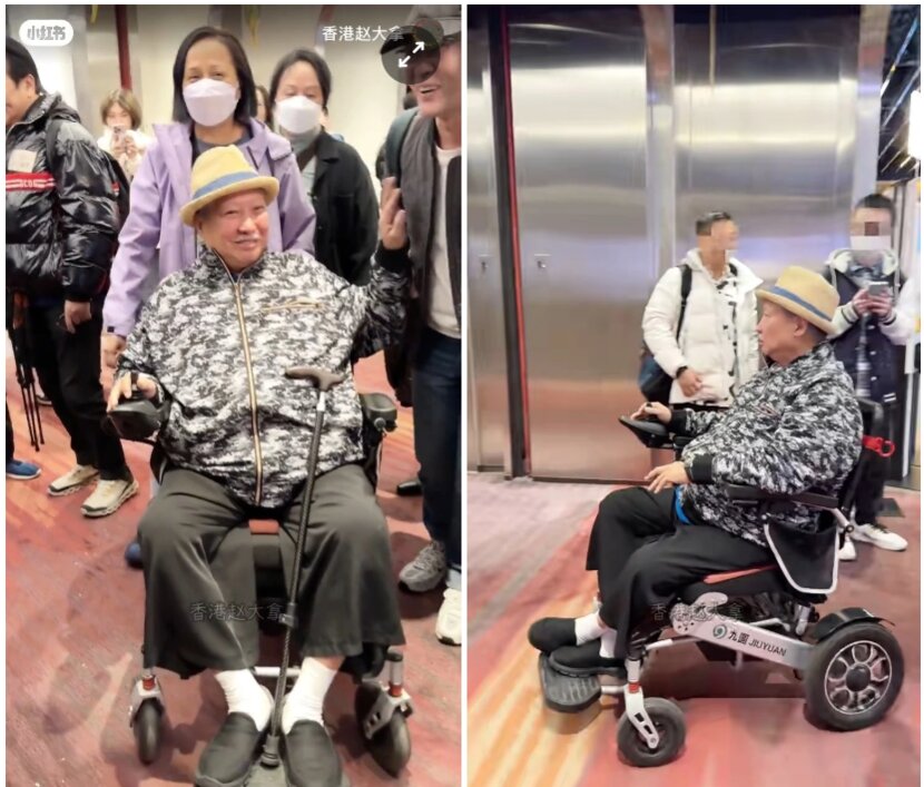 Hồng Kim Bảo ngồi xe lăn khi xuất hiện ở rạp phim. Ảnh: Stheadline.