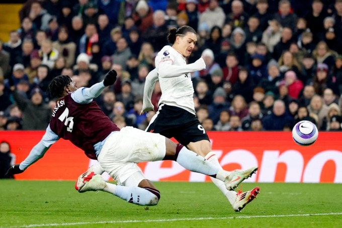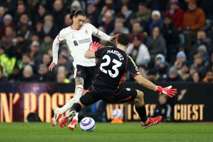 Hôm qua, Nunez vào thay Diogo Jota phút 66. Sau pha bỏ lỡ trước khung thành trống, tiền đạo người Uruguay còn có cơ hội khác ở phút 74. Anh chặn đường chuyền của Tyrone Mings và băng xuống, nhưng thủ thành Emiliano Martinez kịp băng ra, nhoài người ngăn cản. Nếu xử lý tốt hơn, Nunez hoàn toàn có thể bấm bóng qua người Martinez và sút vào khung thành trống.