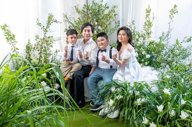 Nghệ sĩ Ưu tú Kim Tử Long cùng vợ và các con. Ảnh: FBNV