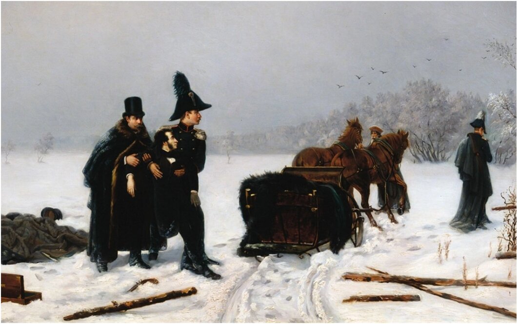 Để bảo toàn danh dự của mình, “Mặt trời thi ca Nga” Pushkin quyết định đấu súng với kẻ được cho là đã quan hệ vụng trộm với vợ của ông. Viên đạn định mệnh đã phá nát xương đùi của đại thi hào, khiến ông qua đời một thời gian ngắn sau đó.