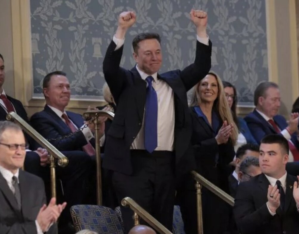 Elon Musk đứng dậy sau khi Tổng thống Donald Trump giới thiệu ông là "người đứng đầu" DOGE trong phiên họp chung của Quốc hội Mỹ tại Điện Capitol vào ngày 4/3 tại Washington, Mỹ. Ảnh: Getty