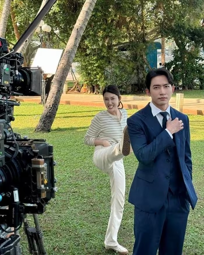 Thúy Ngân chia sẻ nhiều hình ảnh hậu trường phim bên Võ Cảnh. Ảnh: FB Thúy Ngân.